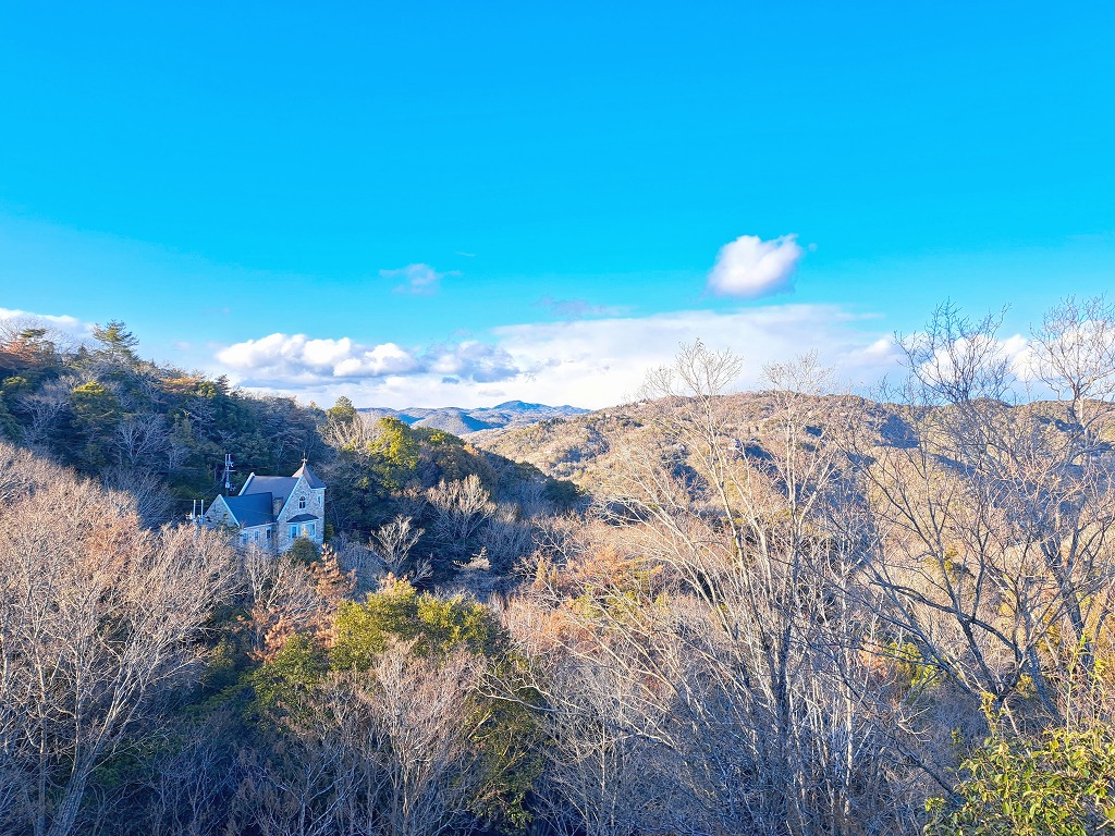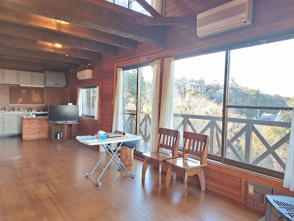 リビングの大きな窓から山並みを見渡せるようになっており、北側と東側とでそれぞれ違う景色を楽しめるようになっています。
