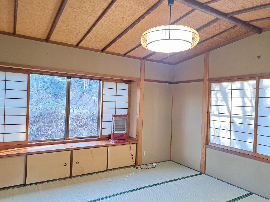 1階に8帖の和室があり、天井が葦簀張りになっています。